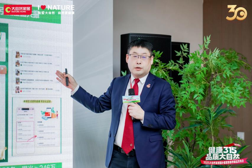 發布會伊始,大自然家居集團副總裁、COO、CHO饒海清深刻闡述了大自然家居的品牌初心與未來愿景。饒海清表示,自1995年創立以來,大自然家居始終堅守“擔環保責任、普健康生活、做健康家居”的使命,以綠色健康為核心理念,持續探索可持續發展路徑。此外,他還強調讓億萬家庭享受健康家居,不是商業,而是一份責任;讓綠色生活觸手可及,不僅是愿景,更是實實在在的行動。大自然家居將以實際行動踐行承諾,推動綠色家居成為新時代風潮。