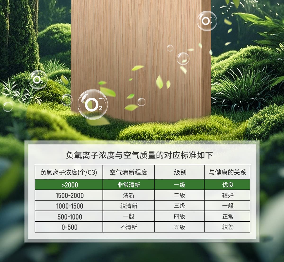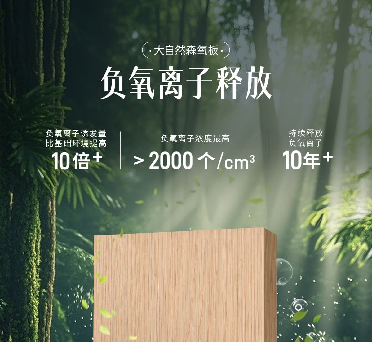 誘發(fā)空氣負(fù)離子量 比基礎(chǔ)環(huán)境提高10倍+
