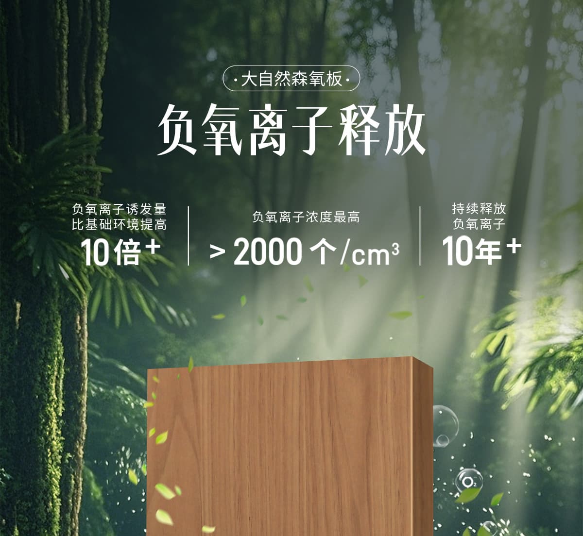 誘發空氣負離子量 比基礎環境提高10倍+